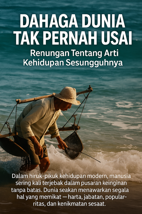 Dalam hiruk-pikuk kehidupan modern, manusia sering kali terjebak dalam pusaran keinginan tanpa batas. Dunia seakan menawarkan segala hal yang memikat harta, jabatan, popularitas, dan kenikmatan sesaat. Namun, sebagaimana air laut yang terasa asin meski tampak menyegarkan, semakin banyak kita meneguknya, semakin hauslah kita dibuatnya. Inilah hakikat dunia: menipu dengan keindahan semu.